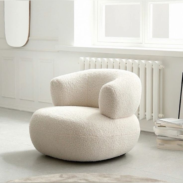Description: A cloud-like lounge chair crafted for serenity and stillness. Wrapped in soft, boucle-style fabric, it invites you to pause and reflect. Its sculptural form blends seamlessly into minimalist or modern interiors.