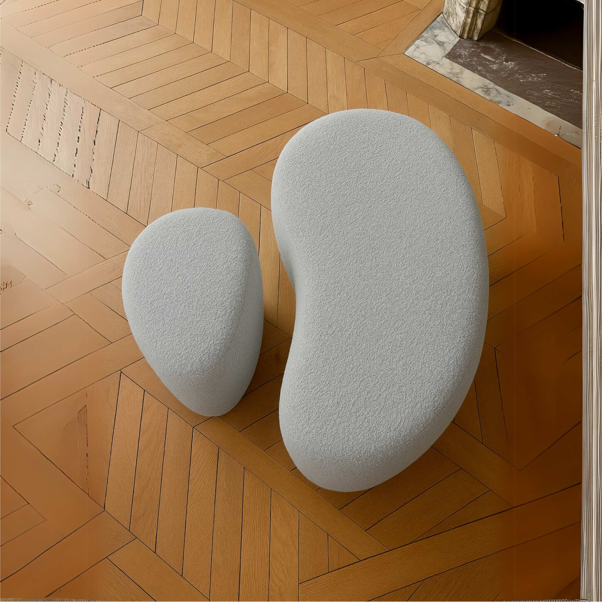 Nuvio adds a meditative softness to any room. The sculpted foam base paired with textured bouclé fabric blends art and utility. Ideal as a modern ottoman or a sculptural side seat.