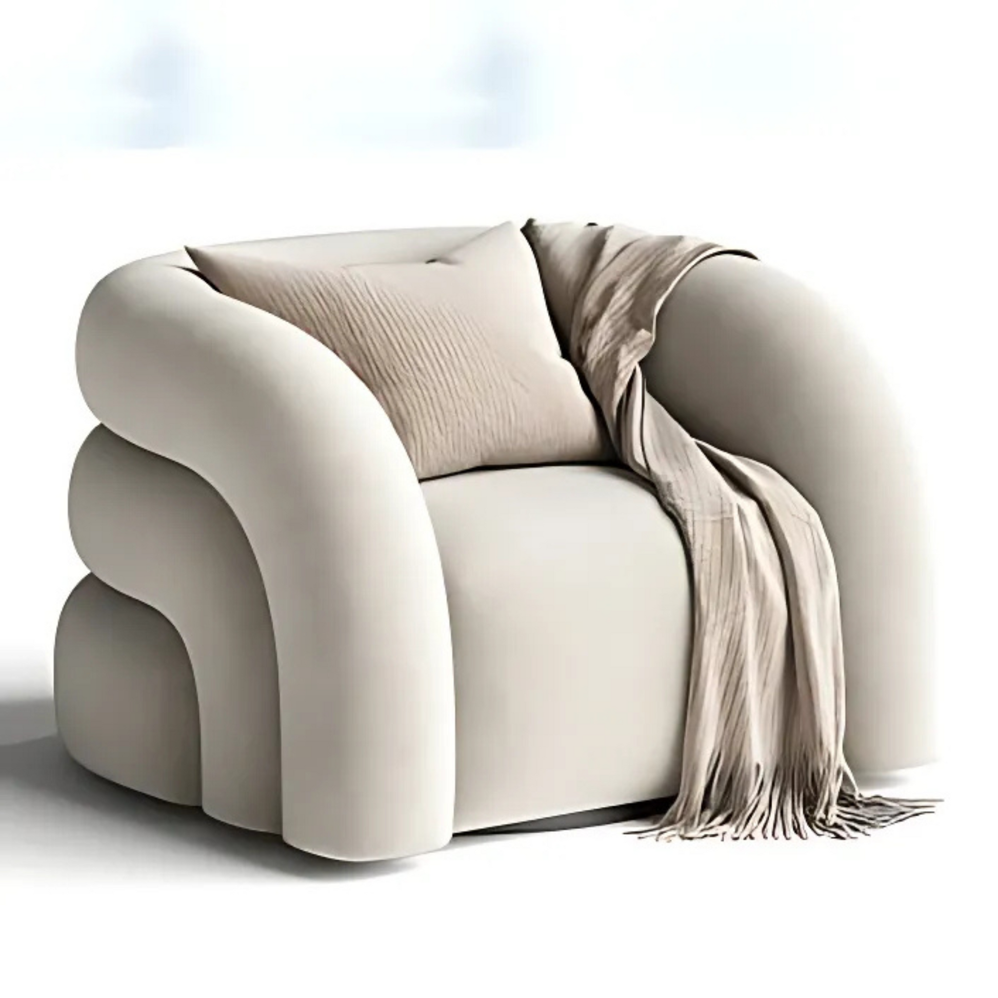 Enara embraces the moment with sculptural serenity and tactile warmth. Its plush curves suggest both balance and invitation, perfect for intentional spaces. A timeless accent that turns any corner into calm.